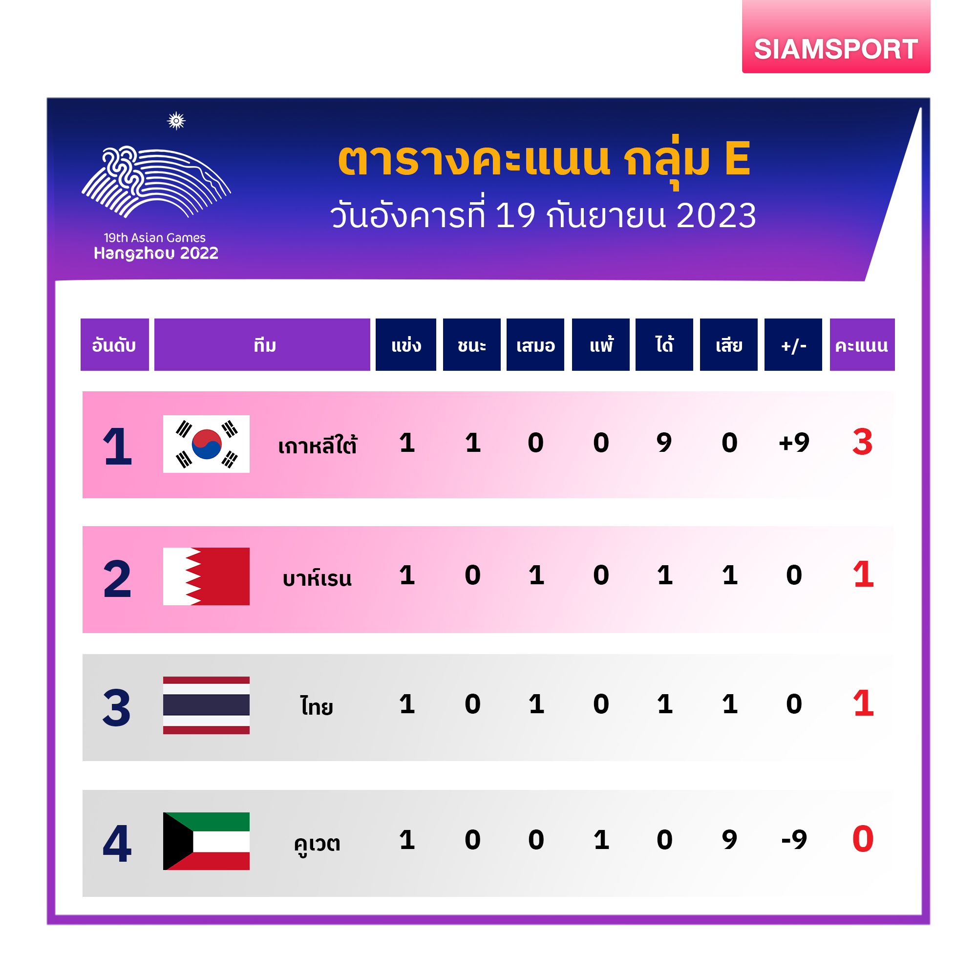 สรุปผลคู่อื่นๆ ในการแข่งขันเอเชียนเกมส์ ครั้งที่ 19 ประเทศจีน ประจำวันที่ 19 ก.ย. 66