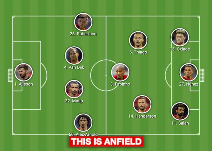 กองหน้า - อเล็กซ์ อ็อดซ์เลด-แชมเบอร์เลน, ดาร์วิน นูนเญซ, โมฮาเหม็ด ซาลาห์