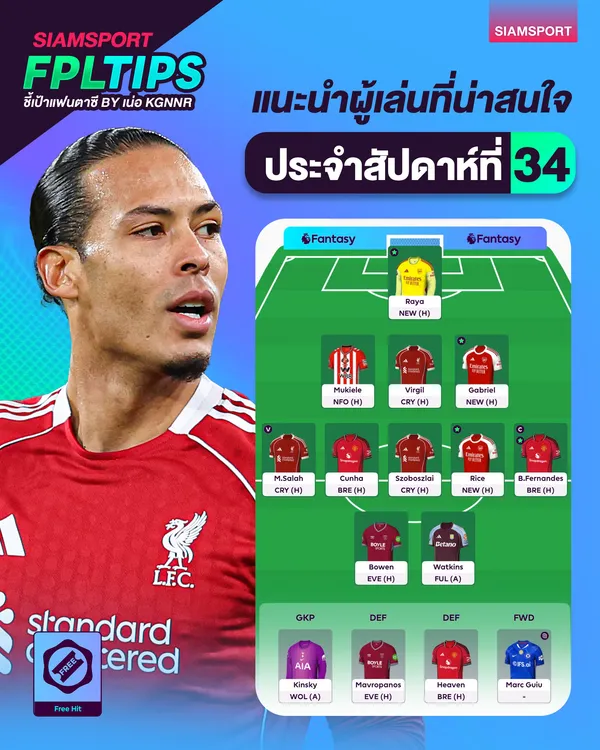 กลุ่มที่เตรียมกด Wildcard ในนัดที่ 35: และต้องการนักเตะแค่สัปดาห์เดียว ควรเล็งซื้อตัวที่ใกล้เคียงกับคนที่เล่น Free Hit ในสัปดาห์นี้ครับ