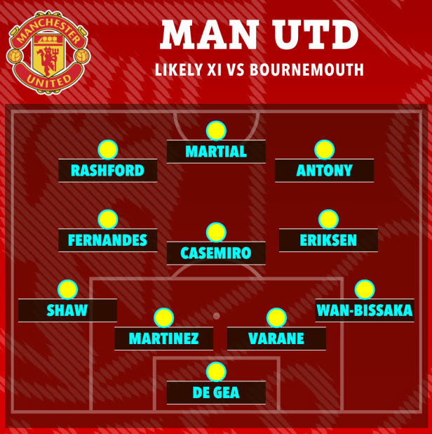 คาดการณ์ 11 ตัวจริงที่น่าจะเป็นไปได้ของแมนยูเกมพบ บอร์นมัธ
