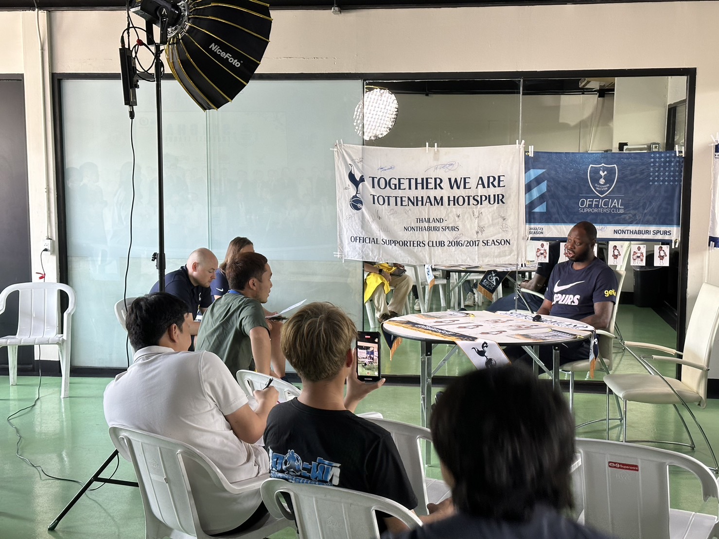 ซึ่งหนึ่งในทีมงาน “ไก่เดือยทอง” ที่เดินทางมาด้วยนั้นคือ เลดลี่ย์ คิง อดีตกองหลังกัปตันทีม ที่ปัจจุบันรับบทบาททูตลูกหนังประจำสโมสร โดย คิง ได้ให้เกียรติสัมภาษณ์กับสื่อมวลชนอย่างเป็นกันเอง