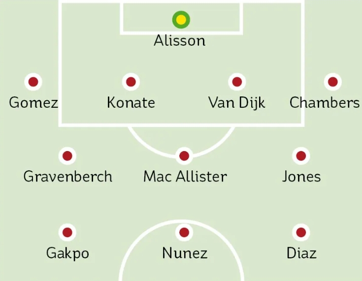 ไลน์อัพชุดนี้จะให้ คอเนอร์ แบรดลี่ย์ ดาวรุ่งอีกราย ลงมาเล่นเป็นแบ็กขวา หลังทำผลงานได้ดีเมื่อลงมาเป็นตัวสำรองในเกมชนะ อาร์เซน่อล และเป็นตัวจริงเกมล่าสุดที่เฉือน ฟูแล่ม 2-1 ในถ้วย คาราบาว คัพ รอบรองชนะเลิศ นัดแรก ที่สนาม แอนฟิลด์ เมื่อวันพุธที่ 10 ม.ค. ที่ผ่านมา