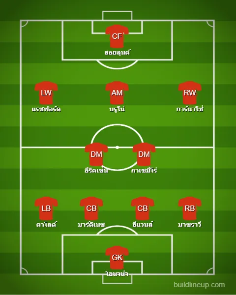 แนวรุก : อเลฮานโดร การ์นาโช่, บรูโน่ แฟร์นันด์ส, มาร์คัส แรชฟอร์ด