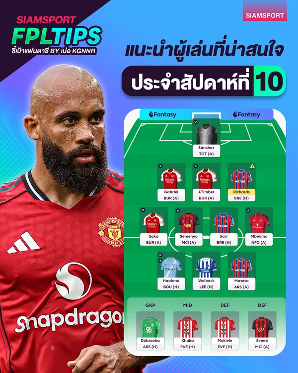 “เน่อ เคกันเนอร์” แห่ง SIAMSPORT วิเคราะห์ Fantasy Premier League วีค 10 ชี้จุดน่าสนใจทั้งเกมรุก–เกมรับจาก เอ็มเบอโม่, พาเลซ, และ อาร์เซน่อล พร้อมอัปเดตกัปตันน่าจับ, กลยุทธ์ใช้ชิป, และคำแนะนำซื้อ–ขายนักเตะประจำสัปดาห์