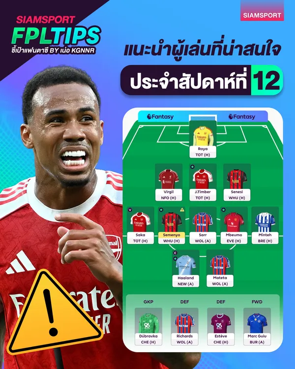 อัปเดตแนวทางจัดทีม FPL หลังเบรกทีมชาติ เมื่อกาเบรียลตัวหลักเจ็บยาวถึงมกราคม พร้อมวิเคราะห์กองหลังทดแทนที่คุ้มสุดจากลิเวอร์พูลและอาร์เซน่อล รวมถึงเทคนิคใช้ไวลด์การ์ดในวีค 12 โดย เน่อ Kgnnr