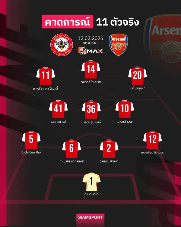 แมตช์เยือนจีเท็ค คอมมิวนิตี้ สเตเดี้ยม กุนซือชาวสแปนิช มีเรื่องให้ต้องปวดหัวเพิ่มอีกเมื่อล่าสุด ไค ฮาแวร์ตซ์ มาเจ็บกล้ามเนื้อเพิ่มและน่าจะพลาดเกมบุกไปเยือน เบรนท์ฟอร์ด ในวันพฤหัสฯนี้ ขณะที่ บูกาโย่ ซาก้า ยังไม่ฟิต ส่วนในรายของ มาร์ติน โอเดอการ์ด กับ เลอันโดร ทรอสซาร์ ยังไม่ชัวร์ว่าจะสามารถลงสนามได้หรือไม่