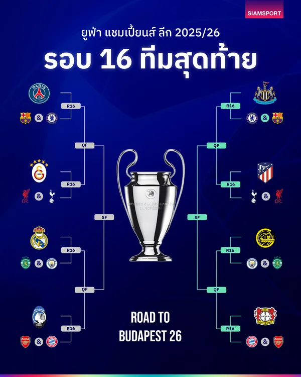 ยูฟ่าเตรียมจับสลากแชมเปี้ยนส์ ลีก รอบ 16 ทีมสุดท้าย วันศุกร์นี้ 18.00 น. ตามเวลาไทย พร้อมวางสายถึงรอบชิงชนะเลิศ ภายใต้ระบบใหม่ฤดูกาล 2025/26