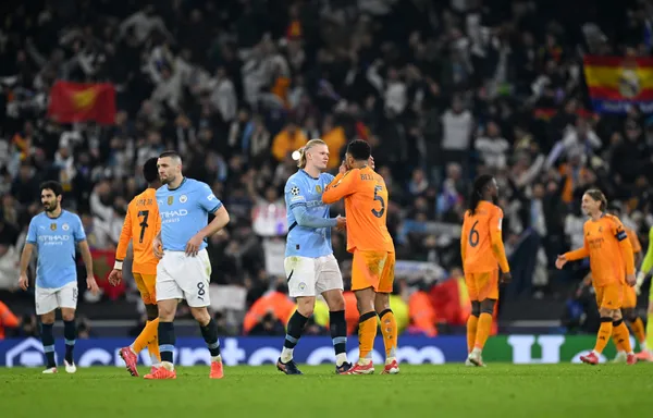 อย่างไรก็ดี ราชันชุดขาว สร้างความช็อกให้กับสาวก แมนฯ ซิตี้ อย่างจังในช่วงทดเวลาโดย เบลลิ่งแฮม สวมบทฮีโร่กดประตูชัยให้ทีมเยือนได้เริงร่าจากสกอร์ชนะ 3-2 สร้างความได้เปรียบมากขึ้นไปอีกก่อนกลับไปเล่นเกมหน้าที่ เบร์นาเบว