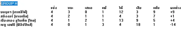 - เงื่อนไขที่สอง หาก เมืองทอง ยูไนต็ด บุกชนะ สลังงอร์ ได้ และเกมสุดท้ายพลาดท่าให้ ชนบุค จะทำให้เมืองทอง มี 8 แต้ม เกมสุดท้ายกรณีที่สลังงอร์ เสมอ เซบู เอฟซี จะมี 8 คะแนน เท่ากัน แต่เมืองทอง ยูไนเต็ด จะมีผลการแข่งขันที่ดีกว่า สลังงอร์ จากการพบกัน 2 นัด จะผ่านเข้ารอบต่อไป