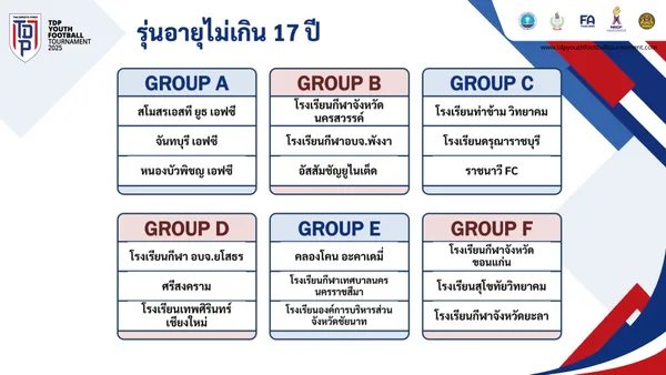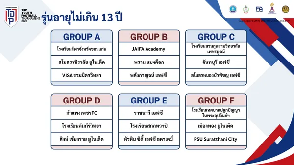 จากนั้นเป็นพิธีจับสลากแบ่งสายการแข่งขันครบทั้ง 3 รุ่นอายุ U13, U15 และ U17 เพื่อกำหนดเส้นทางการแข่งขันอย่างเป็นทางการ ก่อนเข้าสู่รอบชิงแชมป์ประเทศไทยที่จังหวัดสงขลา โดยการแข่งขันรายการนี้ไม่เพียงมุ่งเน้นผลการแข่งขันในสนาม แต่ยังให้ความสำคัญกับการสร้างมาตรฐานฟุตบอลเยาวชนไทยในทุกมิติ เพื่อเป็นรากฐานสำคัญของการพัฒนาฟุตบอลไทยอย่างยั่งยืนในระยะยาว