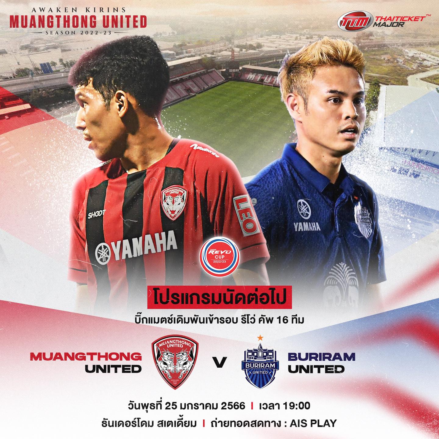 "ไทยทิคเก็ตเมเจอร์" ตัวแทนจำหน่ายบัตรแบบครบวงจรเต็มรูปแบบอันดับ 1 ของเมืองไทย เปิดจำหน่ายบัตรเข้าชมศึกฟุตบอลถ้วย "รีโว่ คัพ 2022-23" รอบ 16 ทีมสุดท้าย ในเกมคู่ "ซูเปอร์บิ๊กแมตช์" ระหว่าง เมืองทอง ยูไนเต็ด ที่จะเปิดรังธันเดอร์โดม สเตเดี้ยม รับการมาเยือนแชมป์เก่า บุรีรัมย์ ยูไนเต็ด โดยจะฟาดแข้งในวันพุธที่ 25 ม.ค.นี้