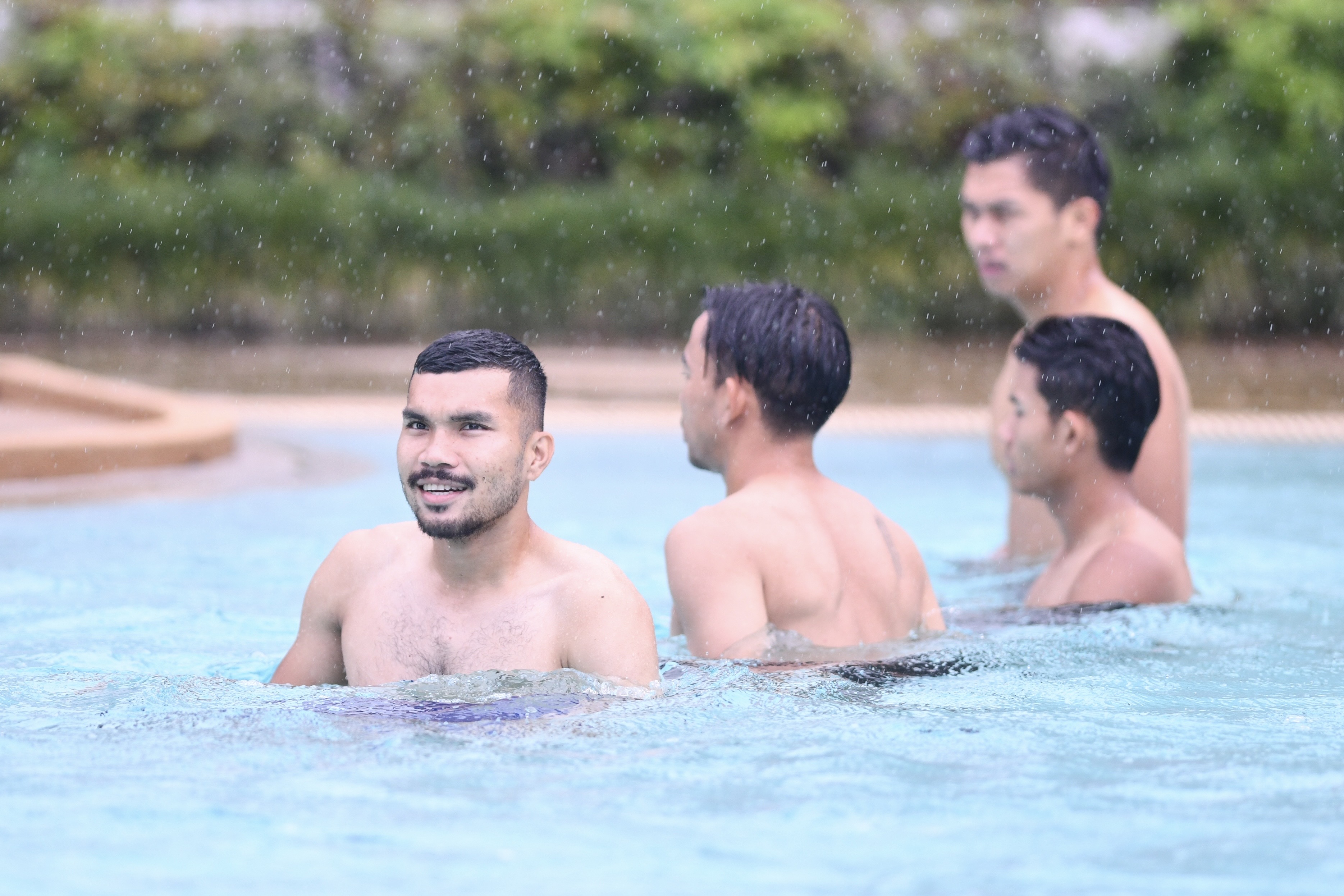 ทัพนักเตะทีมชาติไทย รวมพลพักฟื้นร่างกาย ภายในสระน้ำของอัลไพน์ กอล์ฟ รีสอร์ท ก่อนเตรียมทำศึกนัดชิงที่3 กับ ตรินิแดดแอนด์ โตเบโก ในวันที่ 25 ก.ย.นี้