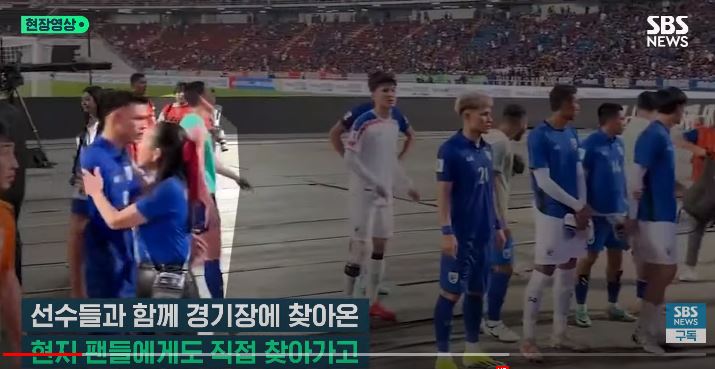 โดย SBS news เล่าย้อนความว่า คุณนวลพรรณ ล่ำซำ ซึ่งเป็นนายกสมาคมฟุตบอลไทย หญิงคนแรก เมื่อเดือนกุมภาพันธ์ที่ผ่านมา ลงมาที่สนามหลังจบเกม เพื่อให้กำลังใจนักเตะทีละคน และสื่อสารกับแฟนบอลชาวไทยในสนาม และลงไปยังมิกซ์โซนกับนักดตะหลังเกมด้วย