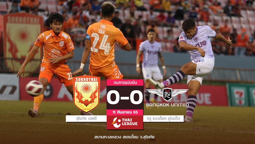 เกมในช่วงครึ่งแรกค่อนข้างดูอึดอัดพอสมควร ทั้งสองทีมแทบไม่มีโอกาสพาบอลไปในพื้นที่สุดท้ายและจบสกอร์กันแบบจะแจ้งได้เลย เจ้าถิ่นแข้งเทพดูเหนือกว่าเล็กน้อยหลังเป็นฝ่ายครองบอลมากกว่า ทว่าเกมรับของทีมเยือนราชันมังกร ยังเล่นได้อย่างมีวินัยเป็นอย่างดี ทำให้จบ 45 นาทีแรก ทรู แบงค็อก ยูไนเต็ด ยังคงเสมอ ราชบุรี เอฟซี 0-0