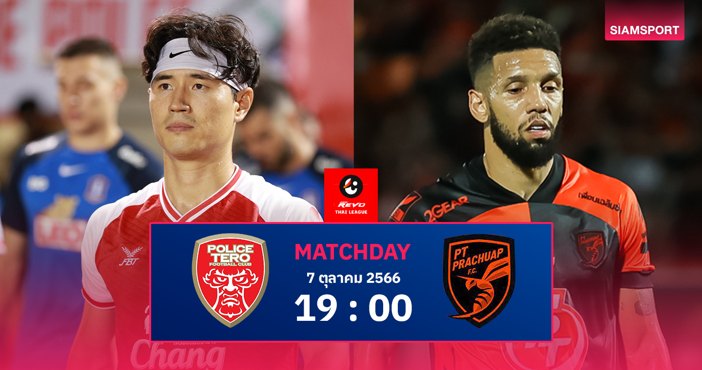 การแข่งขันฟุตบอลไทยลีก ฤดูกาล 2023-24 นัดที่ 7 ประจำวันเสาร์ ที่ 7 ตุลาคม 2566 ที่่สนามบุณยะจินดา "มังกรโล่ห์เงิน" โปลิศ เทโร เอฟซี ทีมอันดับ 9 ของตาราง มี 7 คะแนน พบกับทีม" ต่อพิฆาต " พีที ประจวบ เอฟซี ทีมอัน 14 ของตารางมีอยู่ 5 คะแนน ที่เพิ่งจะเปลี่ยน "โค้ชวัง" ธวัชชัย ดำรงค์อ่องตระกูล ที่ลาออกไปมาเป็น "โค้ชแขก" วีรยุทธ์ บินอับดุลเลาะมาน คุมทัพชั่วคราว