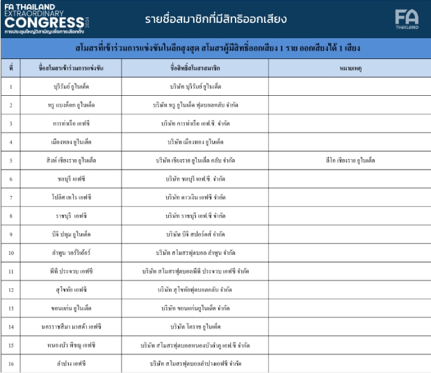 ประกาศรายชื่อ 72 สมาชิกที่มีสิทธิออกเสียงเลือกตั้ง สมาคมกีฬาฟุตบอลแห่งประเทศไทย อย่างเป็นทางการ