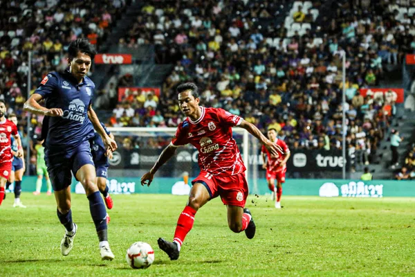 เปิดฉากมาครึ่งแรก บุรีรัมย์ เดินหน้าเกมรุกใส่ทีมเยือนตามคาด โดยฝั่ง ลำพูน มาเน้นตั้งรับอาศัยจังหวะสวนกลับ น.11 ทีมเยือนเกือบมาได้ประตูนำ โมฮัมเหม็ด ออสมาน ลองยิงไกลระยะ 40 หลา ติดเซฟ นีล เอเธอริดจ์ บอลพุ่งชนคานกระเด้งออกไป