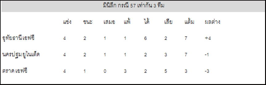 ในส่วนของ ตราด เอฟซี,นครปฐม ยูไนเต็ด,อุทัยธานี เอฟซี กรณีที่สิ้นสุดฤดูกาลแล้วมีแต้มเท่ากัน 3 ทีม ซึ่งหากเกิดกรณี จบด้วย 57 แต้ม ตามระเบียบการแข่งขันถ้ามีทีมที่แต้มเท่ากันมากกว่า 2 ทีม จะไปดูผลงานการพบกันของทีมในรูปแบบมินิลีก เพื่อจัดอันดับเมื่อสิ้นสุดฤดูกาล สถานการณ์ของ ตราด เอฟซี จะเป็นรองทั้ง นครปฐม ยูไนเต็ด และ อุทัยธานี เอฟซี อีกทั้งเฮดทูเฮดยังเป็นรองทั้ง นครปฐม ยูไนเต็ด และ อุทัยธานี เอฟซี