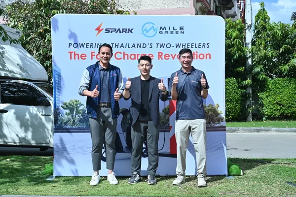 สปาร์ค อีวี ผนึกกำลัง ไมล์ กรีน เปิดตัว ระบบนิเวศการชาร์จสาธารณะมอเตอร์ไซค์ไฟฟ้า ครบวงจรครั้งแรกในไทย ชูเทคโนโลยี Fastest Charge ลดกังวลเรื่องระยะทาง เล็งใช้โครงสร้างพื้นฐานเดิมของ สปาร์ค อีวี กว่า 100 สถานี รองรับตลาดสองล้อไฟฟ้าเติบโตแรง พร้อมส่งออกนวัตกรรมจากฮ่องกง