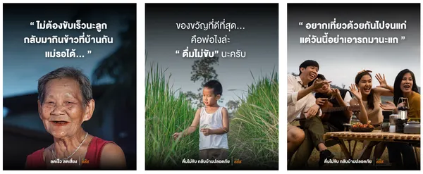 - พลังความห่วงใยจากภรรยาที่รอเปิดประตูบ้านให้: ผ่านเสียงเตือนด้วยความรักอย่าง “ถ้าเหนื่อยหรือดื่มมา ไม่ต้องขับนะ เดี๋ยวที่บ้านไปรับเอง” หรือ “สนุกให้เต็มที่แต่อย่าดื่มแล้วขับนะพ่อ” เป็นแรงใจให้คนขับไม่กล้าเสี่ยงกับความคิดที่ว่าดื่มนิดเดียวคงไม่เป็นไร
