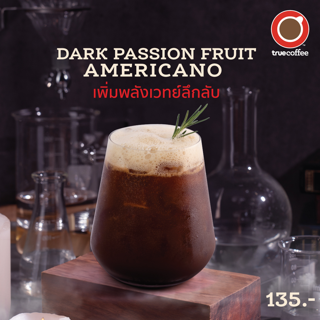 Dark Passion Fruit Americano กาแฟช็อตเข้มข้นกับผลไม้ซ่อนเปรี้ยวเพิ่มพลังเวทย์ลึกลับ เปลี่ยนอเมริกาโนแก้วเดิมให้สดชื่นยิ่งขึ้น ด้วยความพิเศษจาก Passion fruit และ Calamansi ให้ความเปรี้ยวและความหอมสดชื่นสไตล์ซิตรัสผสมผสานกับเอสเพรสโซ่ช็อตเข้มข้น เติมความละมุนด้วยการเชคจนได้ฟองเนียนนุ่มรสชาติเข้มข้นเปรี้ยวหวานสดชื่นเข้ากันได้อย่างลงตัว