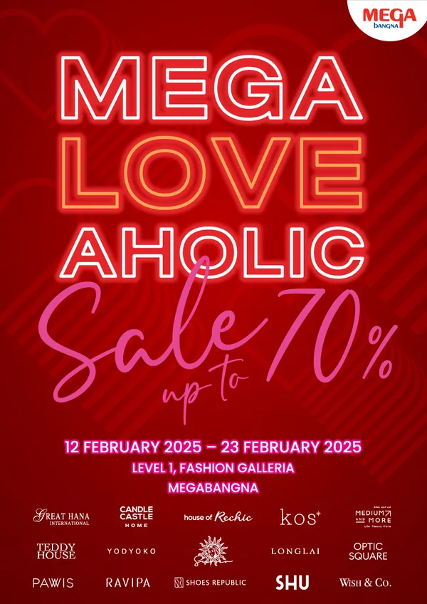 เมกาบางนา ชวนช้อปฉลองเทศกาลวาเลนไทน์ ในงาน "MEGA LOVE AHOLIC" ช้อปของขวัญในราคาพิเศษลดสูงสุด 70% วันที่ 12-23 กุมภาพันธ์ 2568 ณ ศูนย์การค้าเมกาบางนา
