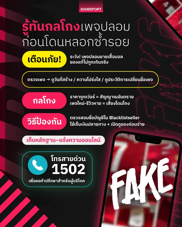 การเป็นแฟนบอลที่ดี ไม่เพียงแต่เชียร์ทีมรักในสนามเท่านั้น แต่ยังต้องรอบคอบในการเลือกซื้อสินค้าที่เกี่ยวข้อง เพื่อหลีกเลี่ยงการตกเป็นเหยื่อของเพจปลอมที่กำลังระบาดในช่วงฤดูกาลนี้