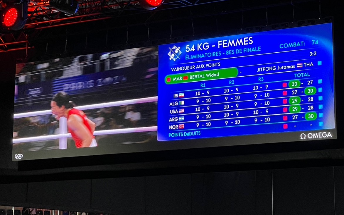 "เฟี้ยว" จุฑามาศ จิตรพงศ์ กำปั้นสาวไทย เปิดใจด้วยความผิดหวัง หลังจบไฟต์ที่พ่าย วิดัด เบอร์ทัล นักมวยจากโมร็อกโก หวุดหวิด 2-3 เสียง ตกรอบ 16 คนสุดท้าย มวยสากล รุ่น 54 กก.หญิง ศึกโอลิมปิกเกมส์ 2024 ที่ฝรั่งเศส ว่า "เกมยกที่สาม ค่อนข้างมั่นใจว่าเราทำได้ดีกว่า หนูมั่นใจ หนูรู้ว่าเราต่อยได้ ต่อยโดนเขา แล้วอีกอย่าง ตอนยกที่สาม เขาเดินเข้ามา ก็โดนเราต่อยตลอด เราพยามออกหมัดเยอะมาก มั่นใจว่าด้วยว่าออกชัดเจนกว่า ออกได้ยาวกว่า ส่วนเขาเข้ามา เขาต่อยถากๆ ไม่ค่อยโดน ถึงโดนก็ไม่ได้เข้าเป้า ต่อยลมเยอะเหมือนกัน"