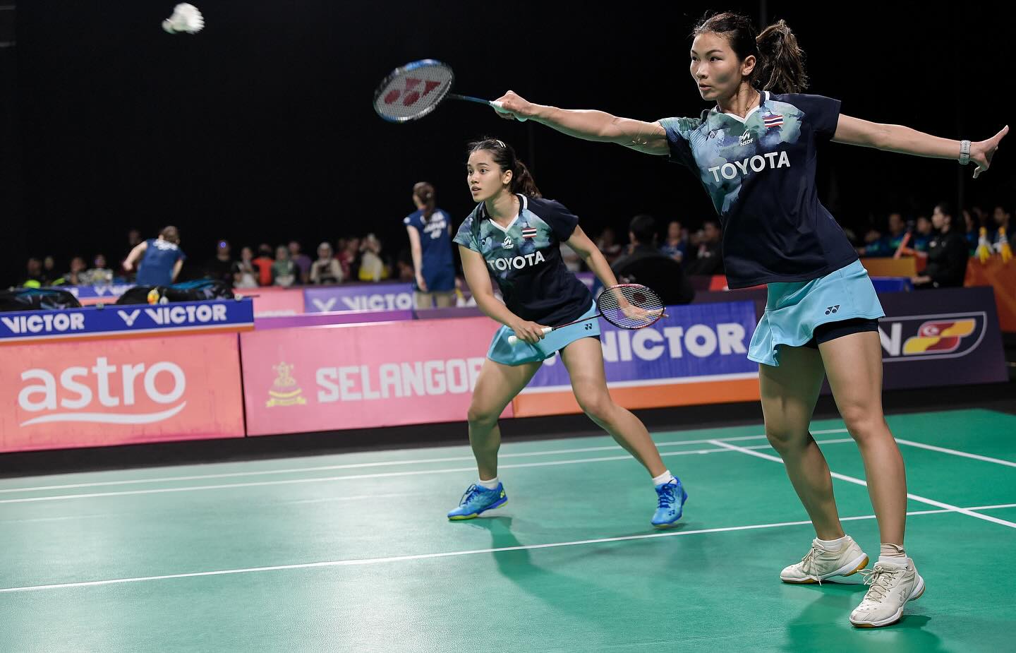 คู่ที่ 4 ประเภทหญิงคู่ มือ 2 "อันนา" นันทน์กาญจน์ กับ "มูนา" เบญญาภา เอี่ยมสอาด คู่มืออันดับ 13 ของโลก เอาชนะ ราเชล อัลเลสย่า โรส กับ อเมเลีย คาฮาย่า ปราติวี่ 2-0 เกม 24-22 , 21-14