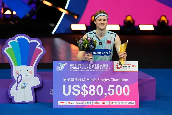 ประเภทชายเดี่ยว อันเดอร์ส แอนทอนเซ่น มือวางอันดับ 3 ของรายการ มืออันดับ 3 ของโลกจากเดนมาร์ก ชนะ โจนาธาน คริสตี้ มือวางอันดับ 6 ของรายการ มืออันดับ 6 ของโลกจากอินโดนีเซีย 2-0 เกม 21-15 , 21-13