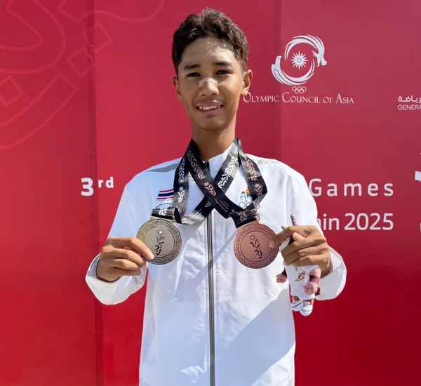 "กฤตภาส หอมขจร" ปั่นแรงคว้า 1 เหรียญเงินจากโรดเรซ และ 1 เหรียญทองแดงจากไทม์ไทรอัล ปิดฉากผลงานทัพ "สองล้อไทย" ในศึกเอเชียน ยูธ เกมส์ 2025 ที่บาห์เรนอย่างสวยงาม