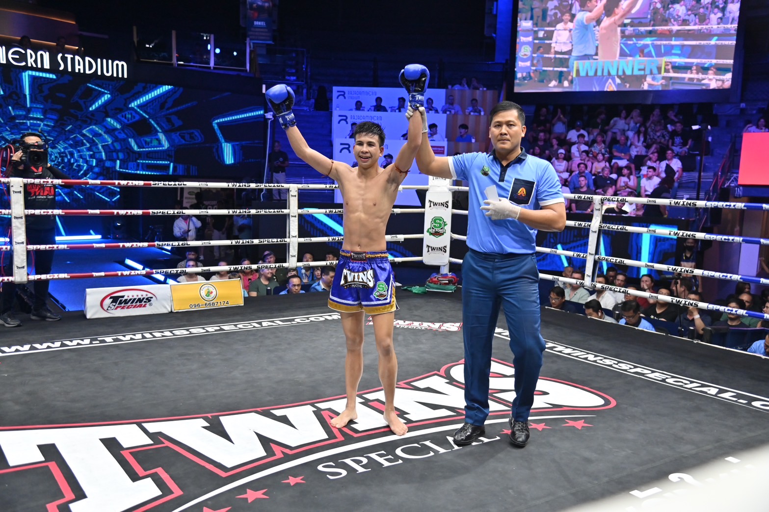 ยก 2 เพชรปวริศเดินลุยเข้าหาสาดแข้งขวาลุย ขณะที่แป๊ะยิ้มถอยตั้งรับวางแข้งตอบโต้เอาคืน เกมยังชิงจังหวะสู้กัน จนกรรมการต้องเตือน แป๊ะยิ้มดักเตะดักถีบมีปล้ำตีสลับ สกัดการบุกของเพชรปวริศที่เน้นวงใน เพชรปวริศ วงในมีศอกอันตราย หมดยก แป๊ะยิ้ม ต่อ 3-2
