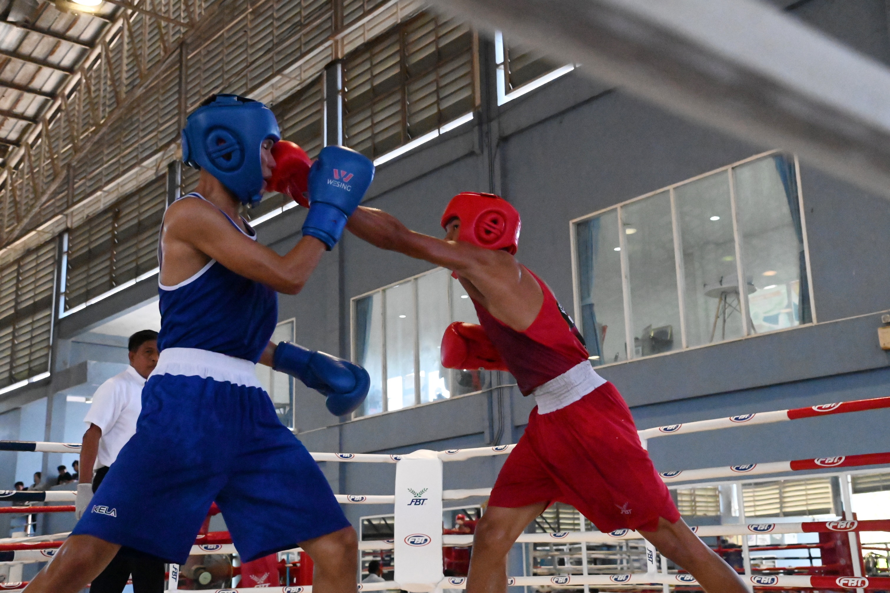 กรังปรี โบขุนทด นักชกเยาวชนชาย จาก รร.กฬ.ทศบ.นครราชสีมา อาศัยความแข็งแกร่งเป็นฝ่ายชนะคะแนน ธนภูมิ มุ่งพิงกลาง สังกัดกองทัพอากาศ 5-0 ผ่านเข้าชิงเหรียญทอง ในประเภทเยาวชน ก. รุ่น 57 กก.