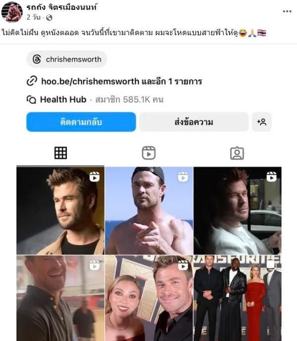 ตอกย้ำความเป็นดาวเด่นระดับโลกอย่างแท้จริงสำหรับ “รถถัง จิตรเมืองนนท์” แชมป์โลก ONE มวยไทย รุ่นฟลายเวต (125-135 ป.) หลัง “คริส เฮมส์เวิร์ธ” กดติดตามอินสตาแกรมส่วนตัว