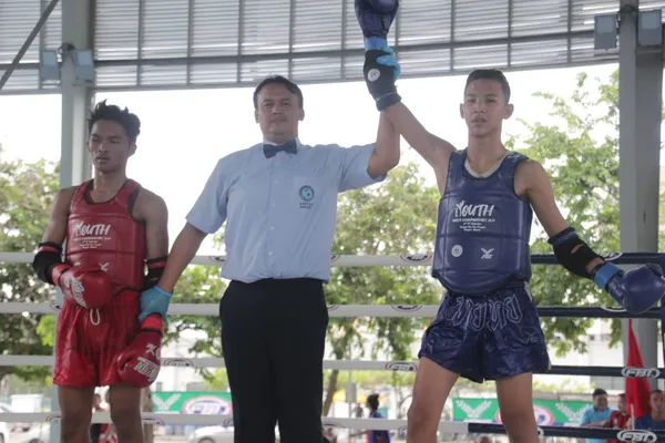 ธนกร น้ำรอบ (รร.กีฬา จ.ตรัง) ชนะทีเคโอ อภิเดช กาญจนะ (รร.กีฬา ทน.สุราษฎร์ธานี) ยกที่ 3
