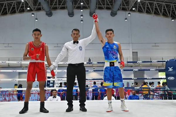 รุ่น 57 กก. ชนาธิป สุกใส (รร.น้ำสวยวิทยา) ชนะอาร์เอสซี กวี ภักดีโชติ (รร.มาบตาพุดพันพิทยาคาร) ยก 3