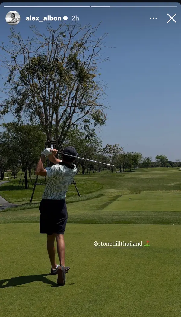มูนี่ เหอ นักกอล์ฟสาวชื่อดังควงแขนหวานใจ อเล็กซานเดอร์ อัลบอน นักขับฟอร์มูล่า วัน ลูกครึ่งไทย ร่วมก๊วนออกรอบกระชับมิตรที่สนามสโตนฮิลล์ พร้อมเข้าวัดขอพรเสริมสิริมงคล