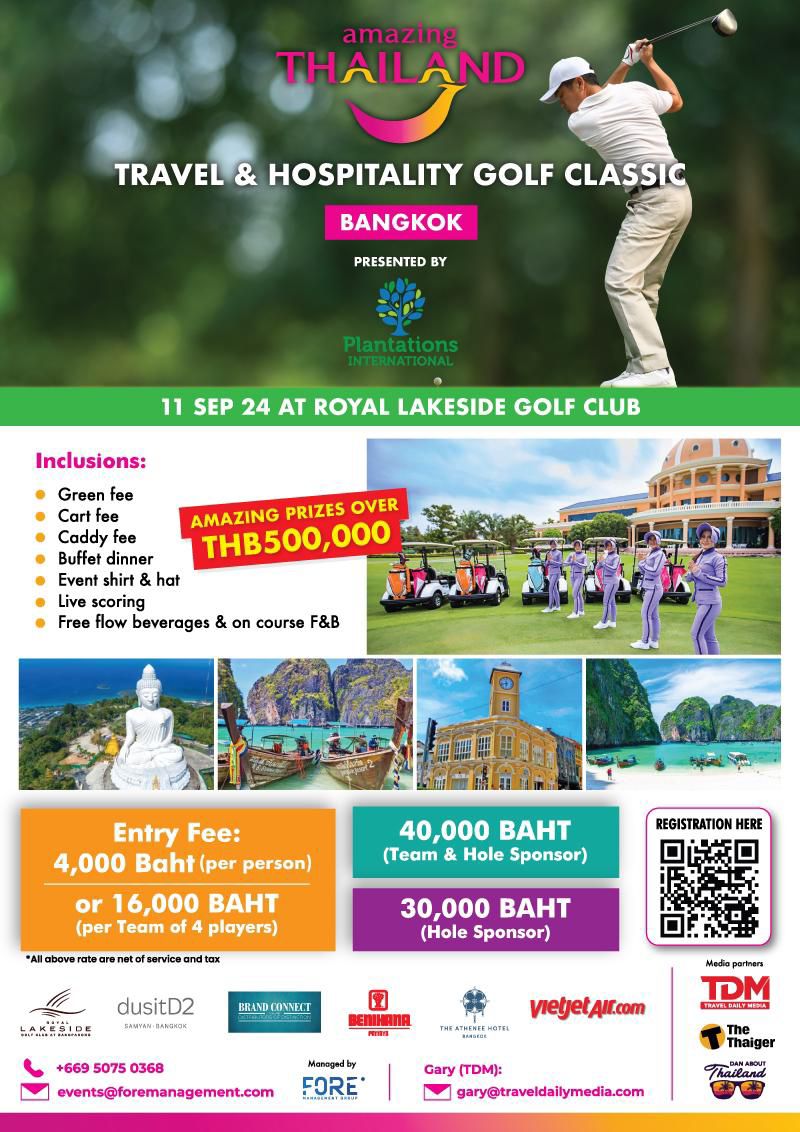 กอล์ฟรายการ อะเมซิ่ง ไทยแลนด์ ทราเวล แอนด์ ฮอสพิทอลลิตี้ กอล์ฟ คลาสสิค 2024 จัดขึ้นโดยการท่องเที่ยวแห่งประเทศไทย (ททท.) และ Fore Management Group ร่วมกับ Travel Daily Media (TDM) และ The Thaiger โดย มร.คริส วัตสัน กรรมการผู้จัดการ โฟร์ เมเนจเมนท์ กรุ๊ป กล่าวเสริมว่า "โฟร์ภูมิใจที่ได้ร่วมงานกับการท่องเที่ยวแห่งประเทศไทย จังหวัดภูเก็ตและภาคใต้ของประเทศไทยมีสนามกอล์ฟที่ดีที่สุดของประเทศและทิวทัศน์ที่สวยงาม ด้วยการสนับสนุนของการท่องเที่ยวแห่งประเทศไทย โฟร์สามารถจัดกิจกรรมกอล์ฟที่ยอดเยี่ยมสองรายการเพื่อนักกอล์ฟได้ทดสอบฝีมือและเพลิดเพลินกับการต้อนรับ พร้อมอาหารและเครื่องดื่มชั้นเลิศจากภาคใต้ของประเทศไทย"