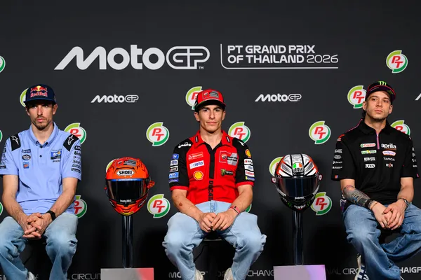 "โมโตจีพี 2026" คิกออฟสนามแรกอย่างเป็นทางการที่สนามช้างอินเตอร์เนชั่นแนล เซอร์กิต จ.บุรีรัมย์ "มาร์ค มาร์เกซ" แชมป์โลก 7 สมัย ควงคู่ "อเล็กซ์ มาร์เกซ" และ "มาร์โก เบซเซ็คคี" นำทีมแถลงความพร้อมพรีเรซ ท่ามกลางบรรยากาศสุดคึกคักของแฟนความเร็วชาวไทย ก่อนเข้าสู่โปรแกรมดวลความเร็วรอบชิงชนะเลิศ "พีที กรังด์ปรีซ์ ออฟ ไทยแลนด์" สุดสัปดาห์นี้