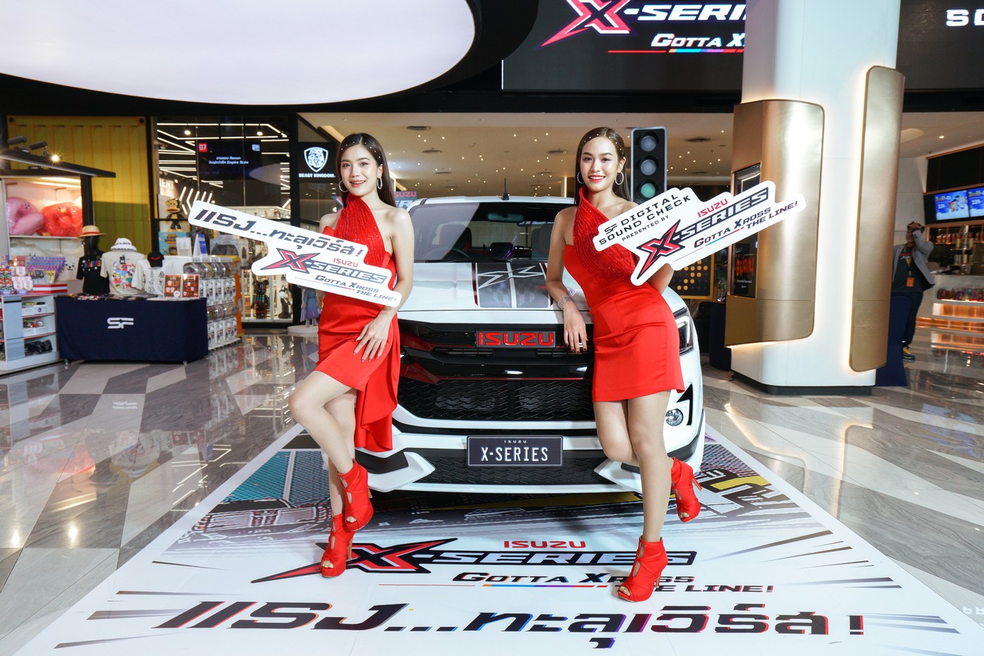 คุณวิชัย สินอนันต์พัฒน์ กรรมการ บริษัท ตรีเพชรอีซูซุเซลส์ จำกัด เผยว่า “อีซูซุมีความยินดีที่ได้ร่วมมือกับบริษัท เอส เอฟ คอร์ปอเรชั่น จำกัด (มหาชน) อีกครั้งในการจัดทำภาพยนตร์โฆษณา Digital Sound Check ชุดใหม่ ซึ่งเป็นชุดที่ 14 ที่มีชื่อว่า “Gotta Xross The Line แรง… ทะลุเวิร์ส” ต้อนรับการเปิดตัวรถรุ่นล่าสุด “อีซูซุ เอ็กซ์-ซีรี่ส์ แรง…ทะลุเวิร์ส” ไลฟ์สไตล์ปิกอัพที่ทุก Element โดดเด่น ไม่ซ้ำใครทั้งดีไซน์และสมรรถนะ ภายใต้คอนเซ็ปต์ Multi-Verse สะท้อนตัวตนของผู้ใช้รถรุ่นใหม่ให้ออกไปโลดแล่นนอกกรอบ สู่มิติใหม่มีสไตล์ในแบบตัวเอง โดยได้ถ่ายทอดความแรง เร้าใจปิกอัพรุ่นล่าสุด “อีซูซุ เอ็กซ์-ซีรี่ส์” ผ่านMulti-verse ทั้งโลกเกม (Game Verse) และโลกมังงะ (Manga Verse) เพื่อให้ได้มุมมองภาพมิติใหม่ เติมเต็มความสนุกของจินตนาการสู่โลกแห่งความจริง ผ่านระบบภาพและระบบเสียงที่ดีที่สุดบนจอยักษ์ในโรงภาพยนตร์เครือ เอส เอฟ ซึ่งเป็นอีกหนึ่งช่องทางการสื่อสารที่มีประสิทธิภาพ สามารถเข้าถึงคนรุ่นใหม่ที่ใช้ชีวิตมีไลฟ์สไตล์ ซึ่งตรงกับ “อีซูซุ เอ็กซ์-ซีรี่ส์” ซึ่งทุกท่านจะได้สัมผัสความแรงผ่านภาพและเสียงในโรงภาพยนตร์เครือ เอส เอฟ ทุกสาขา ทั่วประเทศ ตั้งแต่วันที่ 29 กุมภาพันธ์เป็นต้นไป”