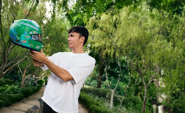 หมวกกันน็อกใบดังกล่าวออกแบบโดย คาร์ลอตตา เฟรเออร์ (Karlotta Freier) ซึ่งได้รับแรงบันดาลใจจากลวดลายไทยและเอเชีย เพื่อสะท้อนถึงภูมิลำเนาในเอเชียตะวันออกเฉียงใต้ของ อัลบอน โดยเจ้าตัวจะสวมใส่หมวกใบนี้ลงแข่งขันในรายการ สิงคโปร์ กรังด์ปรีซ์ ซึ่งมีกำหนดแข่งขันระหว่างวันที่ 3–5 ตุลาคม 2568