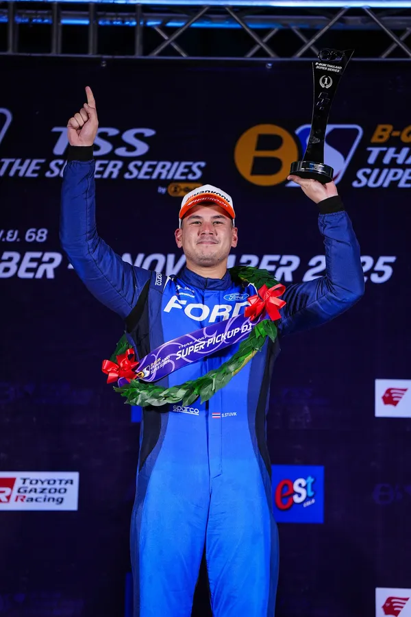 แซนดี้ เคราแก้ว นักแข่งไทยจากออโรร่า ฟอร์ด ไทยแลนด์ เรซซิ่ง พาฟอร์ดเรนเจอร์ หมายเลข 3 คว้าแชมป์ Super Pickup เรซสุดท้ายปิดฤดูกาล ไทยแลนด์ ซูเปอร์ ซีรีส์ 2568 อย่างยิ่งใหญ่