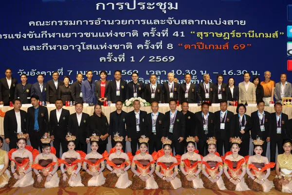 ดร.ก้องศักด ยอดมณี ผู้ว่าการการกีฬาแห่งประเทศไทย (กกท.) เป็นประธานในการประชุมคณะกรรมการอำนวยการและจับสลากแบ่งสาย การจัดการแข่งขันกีฬาเยาวชนแห่งชาติ ครั้งที่ 41 “สุราษฎร์ธานีเกมส์” และกีฬาอาวุโสแห่งชาติ ครั้งที่ 8 “ตาปีเกมส์ 69” ครั้งที่ 1/2569 โดยมี นายจุมพฏ วรรณฉัตรสิริ ผู้ว่าราชการจังหวัดสุราษฎร์ธานี พร้อมด้วยคณะผู้บริหาร กกท. และตัวแทนสมาคมกีฬาเข้าร่วมประชุมอย่างพร้อมเพรียง ณ โรงแรมเดอะ แกรนด์ โฟรวิงส์ คอนเวนชั่น เมื่อวันที่ 7 เมษายน 2569 ที่ผ่านมา