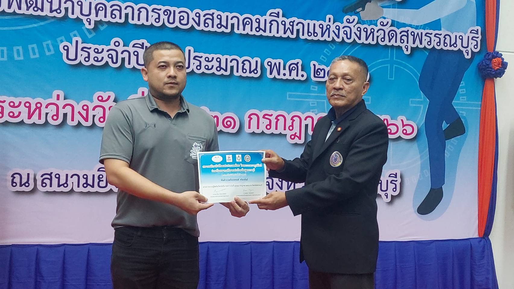ความเคลื่อนไหวของสมาคมกีฬายิงปืนแห่งประเทศไทย ในการเปิดอบรมผู้ตัดสินกีฬายิงปืน โครงการพัฒนาบุคลากรของสมาคมกีฬาแห่งจังหวัดสุพรรณบุรี ประจำปี 2566 ณ สนามกีฬายิงปืน โรงเรียนกีฬาจังหวัดสุพรรณบุรี โดยมีผู้เข้ารับการอบรมที่เป็นผู้ฝึกสอน และนักกีฬายิงปืน ของสโมสรกีฬายิงปืนภายในจังหวัดสุพรรณบุรี และ จังหวัดใกล้เคียง รวมทั้งผู้ฝึกสอนจากส่วนกลางกรุงเทพฯ เข้ารับการอบรม ภายใต้การควบคุมของ ผศ.ทศพร เหรียญเจริญ อุปนายกสมาคมกีฬายิงปืนแห่งประเทศไทย เป็นหัวหน้าวิทยากร , อ.พีระ ภิรมย์รัตน์, สุวิทย์ เม่นแย้ม, นิคม โทปุรินทร์, คมกฤต ฆ้องนำโชค ร่วมกันเป็นวิทยากรถ่ายทอดระเบียบ กติกา และ ประสบการณ์ รวมทั้งมีการทดสอบให้ลงสนามจริงในภาคปฏิบัติ ตลอดทั้ง 5 วัน เพื่อให้ผู้เข้าร่วมอบรมผู้ตัดสินเข้าใจอย่างถ่องแท้ ผลปรากฏว่ามีผู้ผ่านการทดสอบจำนวน 42 คน ประกอบด้วย