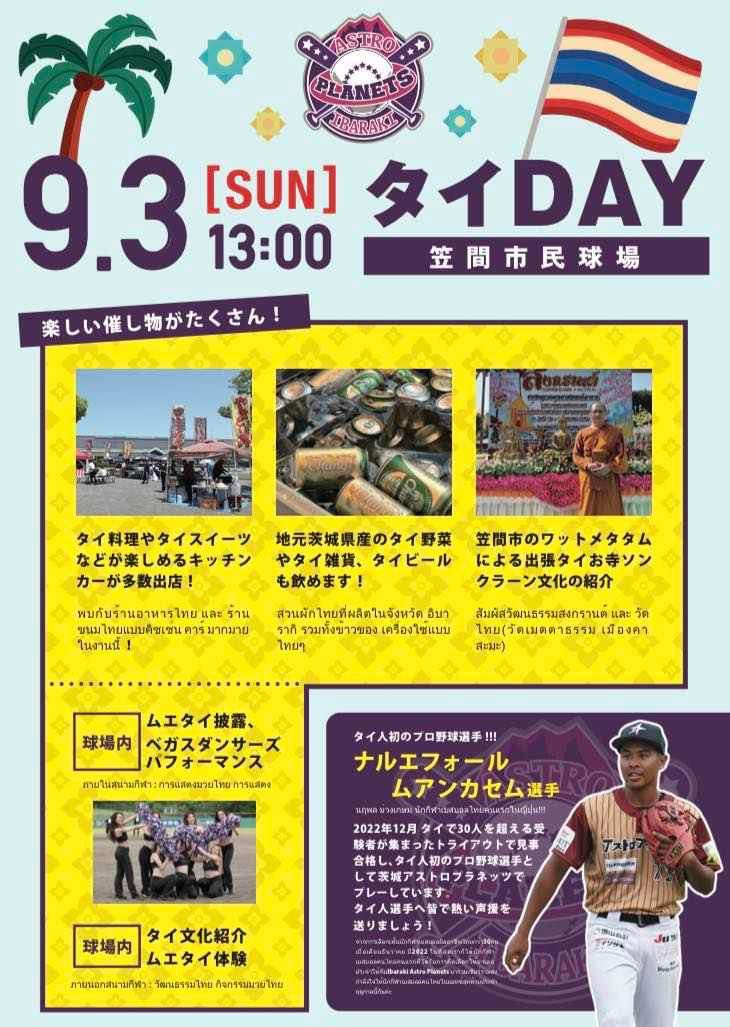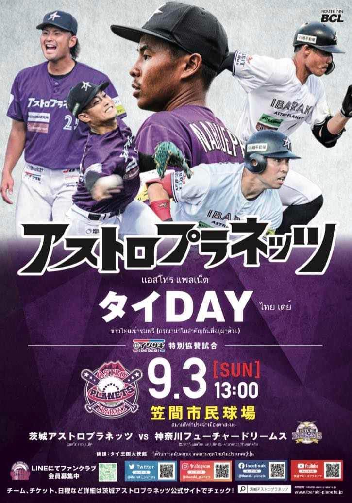 ล่าสุด นักเบสบอลหนุ่มจากจังหวัดอ่างทองรายนี้ ออกมาเชิญชวนให้คนไทยที่อยู่ในประเทศญี่ปุ่น เดินทางมาเชียร์เจ้าตัวและทีมอิบารากิ แอสโทร แพลนเน็ตส์ ซึ่งจะลงแข่งขันแมตช์สุดท้ายของฤดูกาล ในวันอาทิตย์ที่ 3 ก.ย.นี้ ที่สนามคาซามะ ซึ่งคนไทยสามารถเข้าชมการแข่งขันฟรี โดยไม่เสียค่าบัตรผ่านประตูแต่อย่างใด