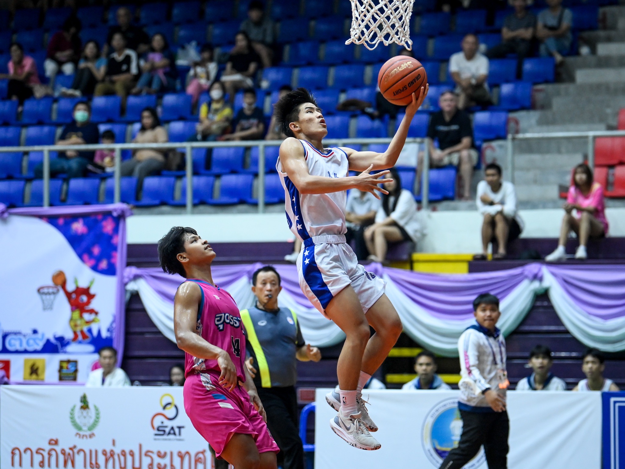 บาสเกตบอล ชิง 2 ทอง ที่โรงยิม 4,000 ที่นั่ง โดยในประเภททีมชาย รอบชิงชนะเลิศเป็นการพบกันของ อุดรธานี กับ กรุงเทพมหานคร ซึ่งผลปรากฎว่าเป็นทางชูตหนุ่มอุดรฯ ที่สามารถเฉือนชัยได้ในช่วงท้าย ทำให้เอาชนะไป 61-54 คว้าเหรียญทองไปครอง ส่วนเชียงใหม่ได้เพียงเหรียญเงิน และเหรียญทองแดงเป็นของ ชลบุรี กับ นนทบุรี ด้านประเภททีมหญิงเหรียญทองเป็นของ นครปฐม ที่เอาชนะ อ่างทอง ในรอบชิงขาดลอย 96-49 อ่างทองได้เพียงเหรียญเงิน และเหรียญทองแดงได้แก่ บุรีรัมย์ กับ เชียงใหม่