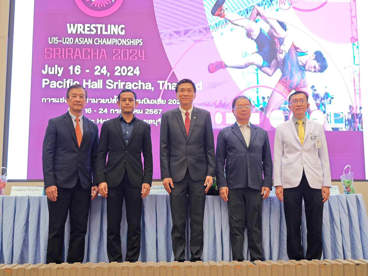 นายวิสุทธิ์ ตั้งวาริธร นายกสมาคมกีฬามวยปล้ำแห่งประเทศไทย พร้อมด้วย นายพิชาญ ประยูรรัตน์ เลขาธิการสมาคมฯ, นายสมบูรณ์ วรปัญญาสกุล กรรมการผู้จัดการศูนย์การค้าแปซิฟิค พาร์ค ศรีราชา และโรงแรมแปซิฟิค พาร์ค ศรีราชา และ ดร.นพ.เกษม ใช้คล่องกิจ BU Directer ศูนย์ศัลยกรรมกระดูกและข้อ โรงพยาบาลพญาไทยศรีราชา และประธานองค์กรแพทย์ศัลยแพทย์ออโธปิดิกผู้เชี่ยวชญด้านเวชศาสตร์การกีฬา ร่วมแถลงข่าวการแข่งขันมวยปล้ำชิงแชมป์เอเชีย 2024 รุ่นอายุไม่เกิน 15 ปี และ 20 ปี รายการ "Asian Wrestling Championships 2024" ที่ห้องประชุมชั้น 25 อาคารเฉลิมพระเกียรติ 7 รอบพระชนมพรรษา กกกท. หัวหมาก เมื่อ 5 ก.ค.67