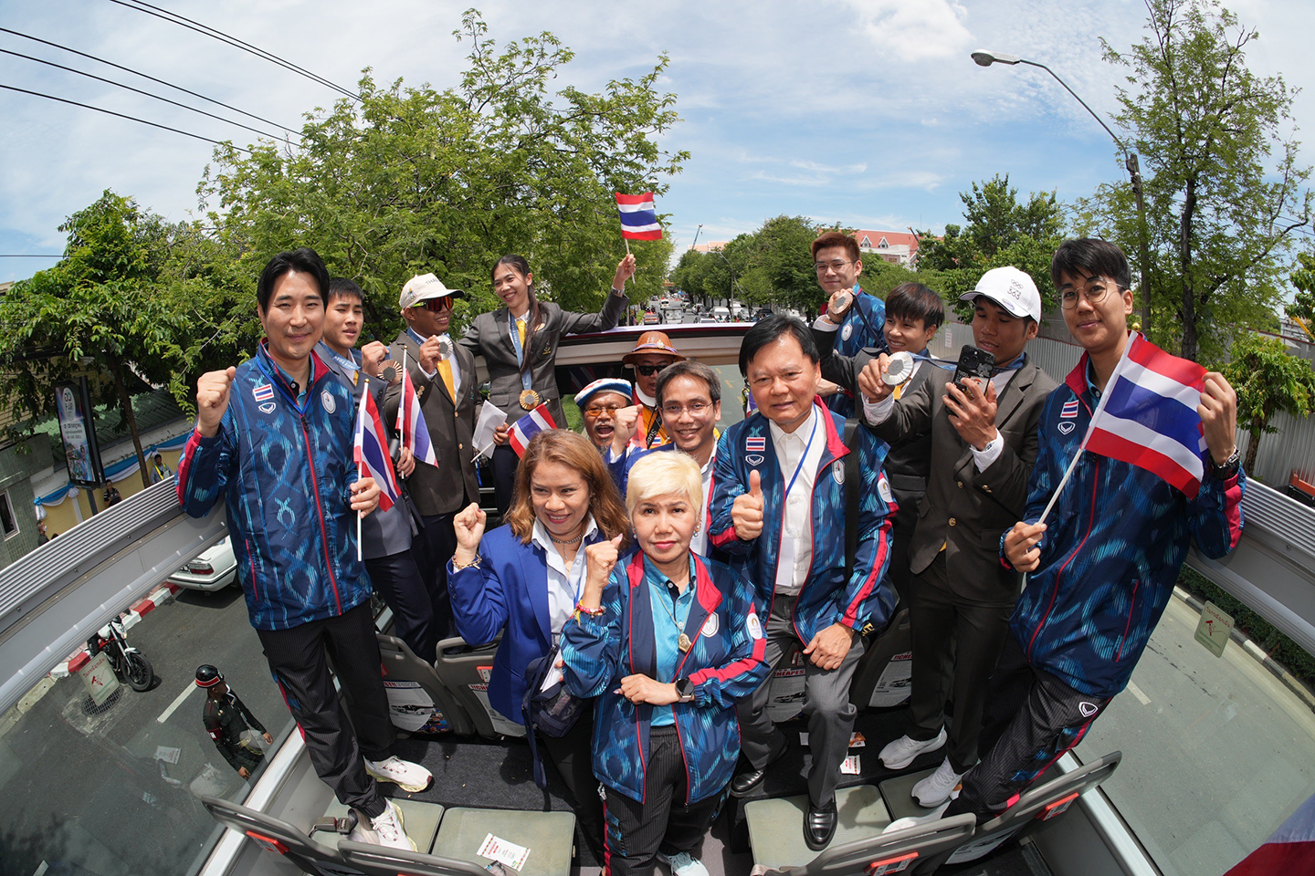 ทัพนักกีฬาทีมชาติ ฮีโร่โอลิมปิกเกมส์ 2024 นำโดย "เทนนิส" พาณิภัค วงศ์พัฒนกิจ จอมเตะสาวเหรียญทอง พร้อมด้วย "วิว" กุลวุฒิ วิทิตศานต์ นักแบดมินตันชายเดี่ยว เหรียญเงิน, "ฟ่าง" ธีรพงศ์ ศิลาชัย และ "เวฟ" วีรพล วิชุมา 2 นักยกเหล็กเจ้าของเหรียญเงิน รวมทั้ง "ออย" สุรจนา คำเบ้า จอมพลังสาวเหรียญทองแดง และ "บี" จันทร์แจ่ม สุวรรณเพ็ง นักชกเหรียญทองแดง และทัพนักกีฬาที่เข้าร่วมแข่งขันทั้งหมด รวมทั้งโค้ชผู้ฝึกสอน ร่วมขึ้นขบวนแห่ฉลองชัยความสำเร็จ จากศึกโอลิมปิกเกมส์ ปารีส 2024 เมื่อช่วงเช้าของวันที่ 16 สิงหาคม 2567