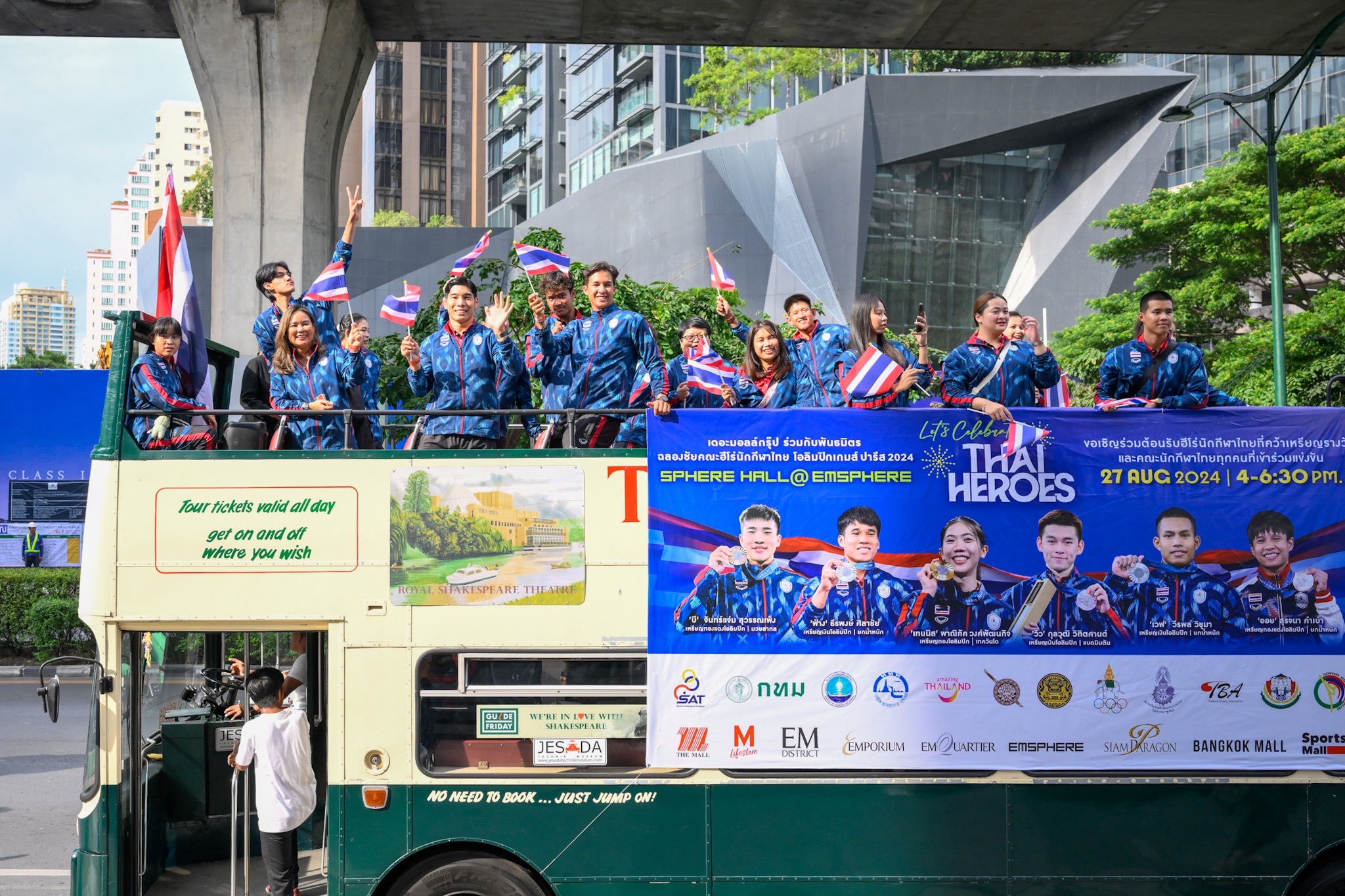 พิธีดังกล่าวมีบรรยากาศที่เต็มไปด้วยความยินดี ตั้งแต่พาเหรดเคลื่อนขบวน โดยมีผู้บริหารระดับสูงจากหน่วยงานภาครัฐร่วมแสดงความยินดี อาทิ นายชัชชาติ สิทธิพันธุ์ ผู้ว่าราชการกรุงเทพมหานคร, ดร.ก้องศักด ยอดมณี ผู้ว่าการการกีฬาแห่งประเทศไทย, นางฐาปนีย์ เกียรติไพบูลย์ ผู้ว่าการการท่องเที่ยวแห่งประเทศไทย เป็นต้น โดยก่อนเริ่มพิธีอย่างเป็นทางการ คณะผู้จัดงานได้นำนักกีฬาที่ได้รับเหรียญรางวัลทั้ง 6 คน ได้แก่ ”เทนนิส“ พาณิภัค วงศ์พัฒนกิจ นักเทควันโด, "วิว" กุลวุฒิ วิทิตศานต์ นักแบดมินตัน, "ฟ่าง" ธีรพงศ์ ศิลาชัย นักยกน้ำหนัก, "เวฟ" วีรพล วิชุมา นักยกน้ำหนัก, "ออย" สุรจนา คำเบ้า นักยกน้ำหนัก, "บี" จันทร์แจ่ม นักมวยสากลหญิง นั่งรถเปิดประทุน นำคณะนักกีฬาที่เข้าร่วมแข่งขันในกีฬาโอลิมปิก ผู้ฝึกสอน สมาคมกีฬา ซึ่งอยู่บนรถ HOP BUS ให้ประชาชนร่วมแสดงความยินดีอย่างทั่วถึง