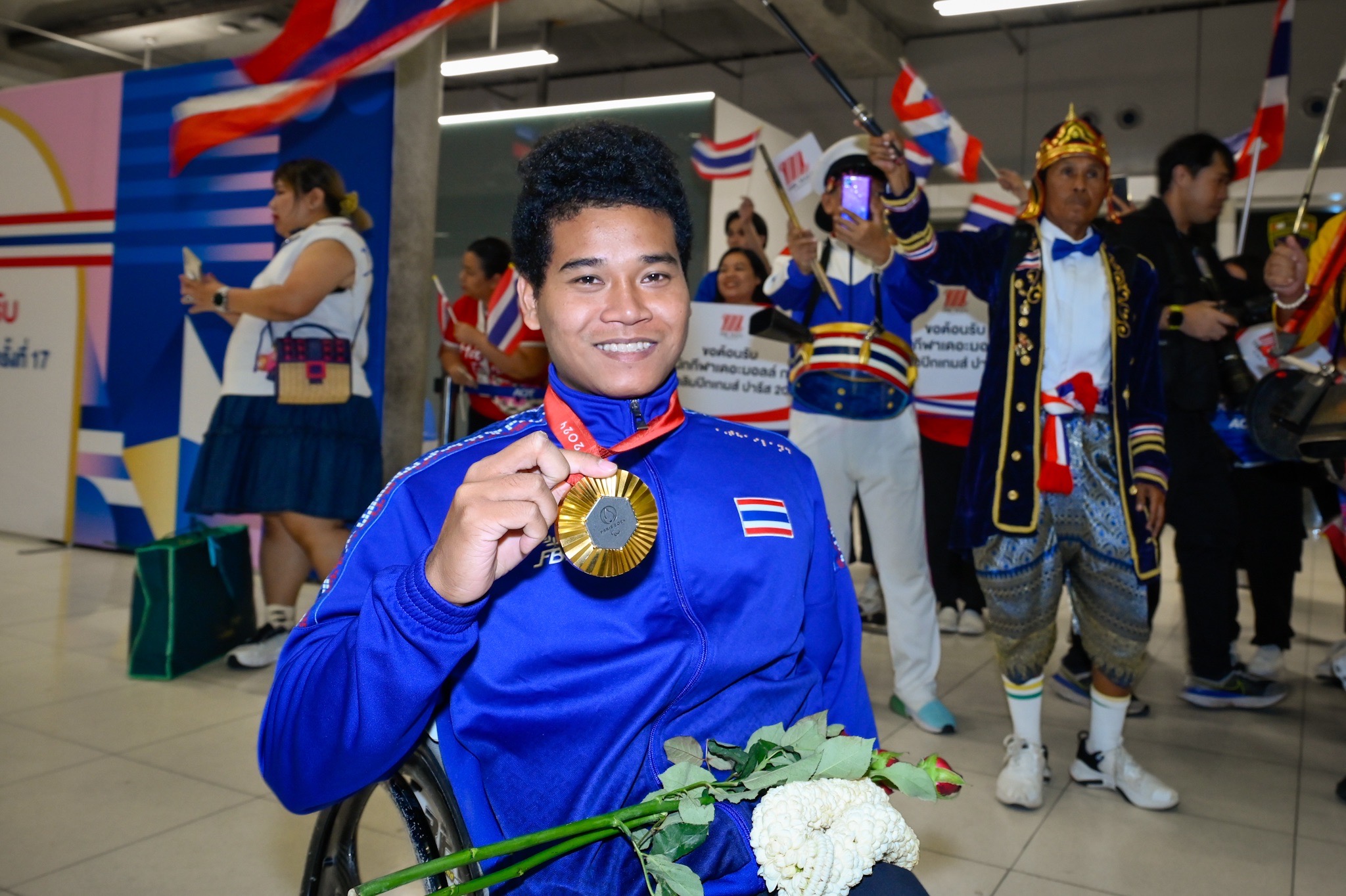 นายสรวงศ์ เทียนทอง รัฐมนตรีว่าการกระทรวงการท่องเที่ยวและกีฬา, ดร.ก้องศักด ยอดมณี ผู้ว่าการกีฬาแห่งประเทศไทย และ ร.ท.ณัยณพ ภิรมย์ภักดี ประธานคณะกรรมการพาราลิมปิกแห่งประเทศไทย เดินทางต้อนรับคณะนักกีฬาและเจ้าหน้าที่พาราลิมปิก ครั้งที่ 17 ปารีสเกมส์ 2024 คณะสุดท้าย ที่เดินทางมาถึงสนามบินสุวรรณภูมิ เมื่อช่วงค่ำวันที่ 10 ก.ย. 67 โดยมีครอบครัวนักกีฬา กองเชียร์เดินทางมารอต้อนรับ ทัพนักกีฬาคนพิการทีมชาติไทยเป็นจำนวนมาก